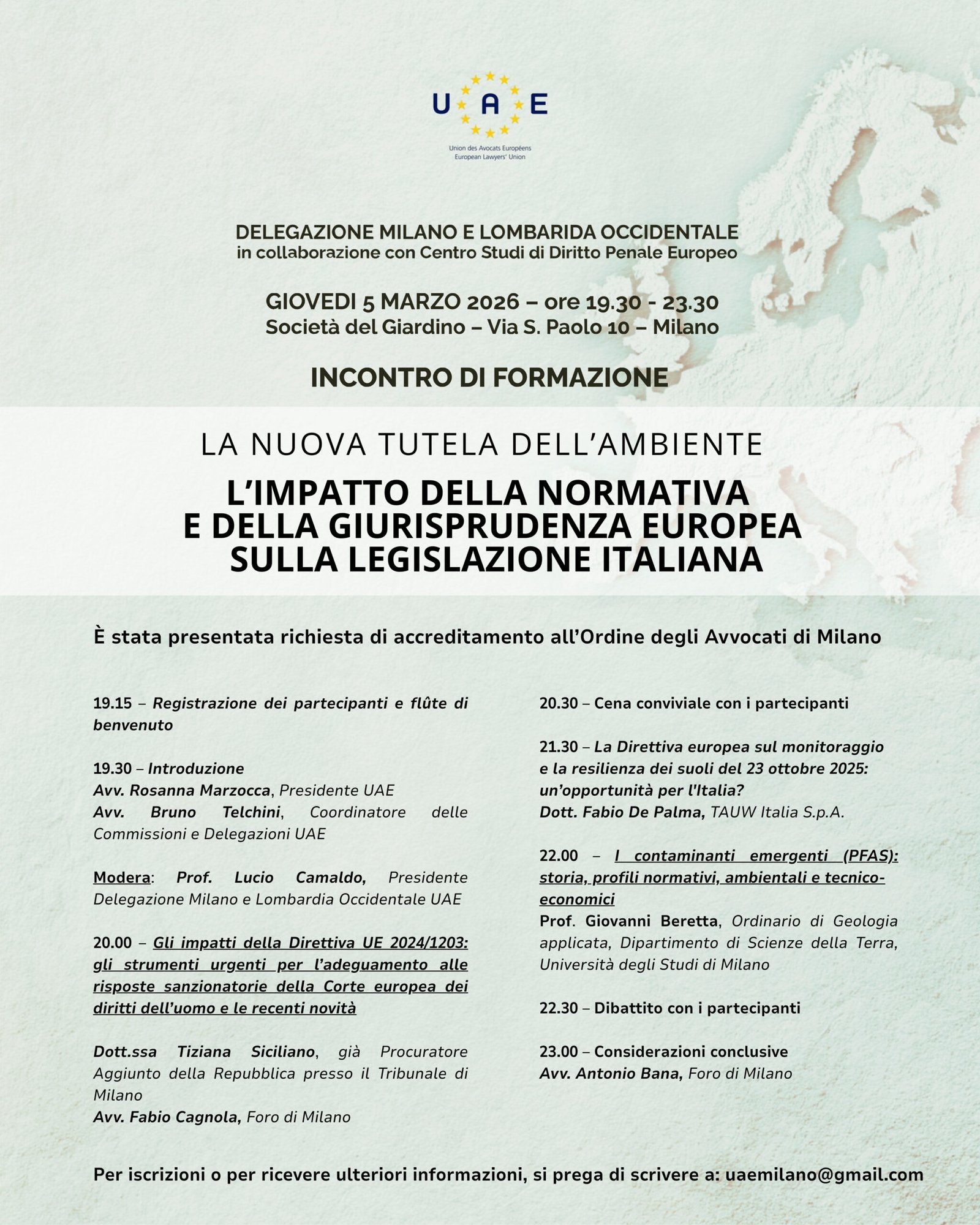 DAZI DOGANALI, BILANCIO E PROSPETTIVE A UN ANNO DALLA SVOLTA 5 marzo 2026 a partire dalle h. 14.30 alle ore 19:00 ROMA, Auditorium della Chiesa di Santa Maria del Carmine alle Tre Cannelle Via del Carmine, 3, 00187 - Roma Commissione U.A.E. Tax law Relatori Avv. Gianlorenzo Battelli - Senior Manager EY […]