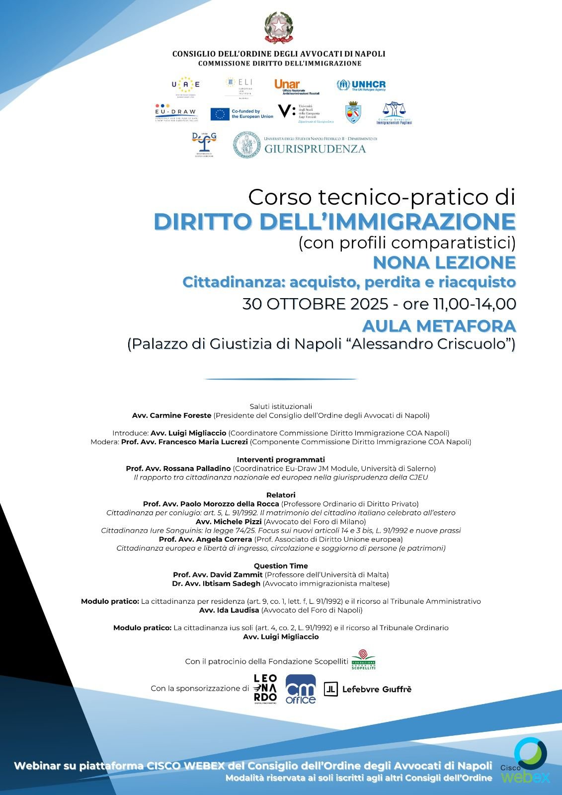 Organizzato dalla Commissione Diritto dell’Immigrazione della U.A.E. e dalla Commissione Diritto dell’Immograzione COA di Napoli.